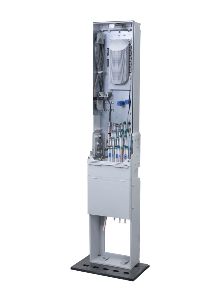The 2LINE NVT is a passive distribution point in the FTTx fibre optic network. It offers an orderly tube, cable and splice management and thus supports the requirements of modern fibre optic networks.