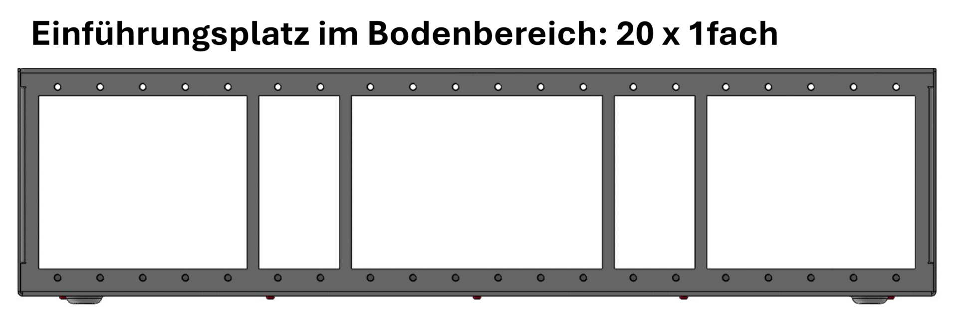 Einführungsplatz im Bodenbereich: 20 x 1fach für Kabeldurchführungen